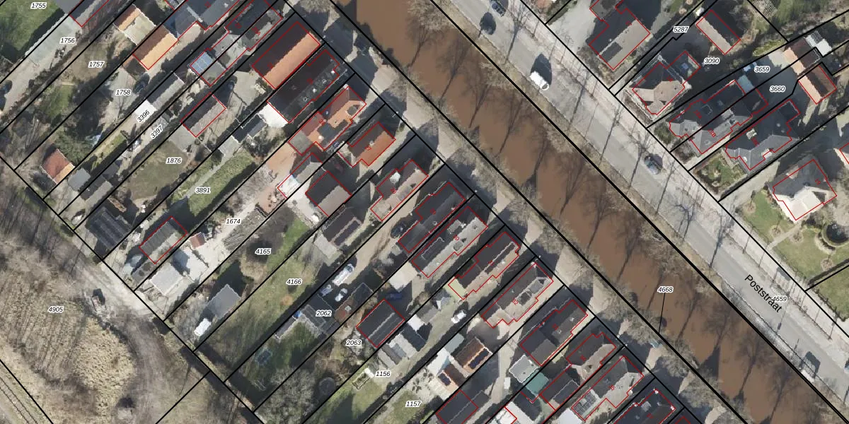 Het perceel waarop Postkade 29 staat heeft een oppervlakte van 737 m². Dit is een groot perceel. De perceeloppervlakte wordt geregistreerd door het Kadaster. Gedetailleerde informatie over de maten van dit perceel kunt u vinden in het rapport Kadastrale kaart met maatvoering van Postkade 29.