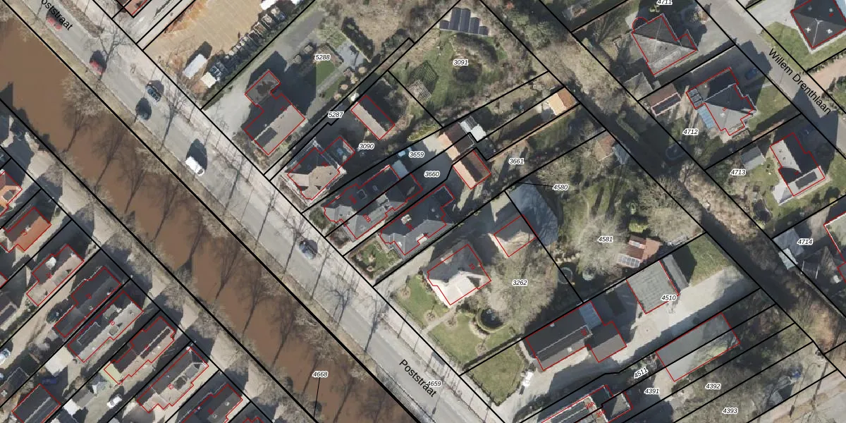 Het perceel waarop Poststraat 18-C staat heeft een oppervlakte van 646 m². Dit is een groot perceel. De perceeloppervlakte wordt geregistreerd door het Kadaster. Gedetailleerde informatie over de maten van dit perceel kunt u vinden in het rapport Kadastrale kaart met maatvoering van Poststraat 18-C.