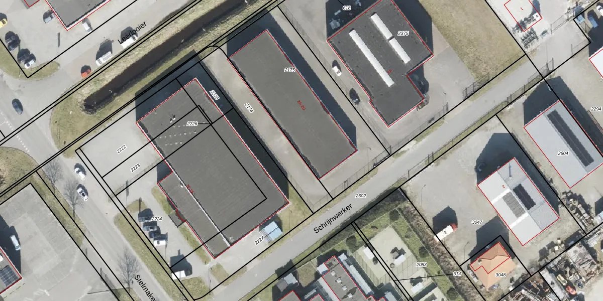 Schrijnwerker 2-C is gelegen op kadastraal perceel OWD00W2175. Deze kadastrale aanduiding is uniek en wordt gebruikt door het Kadaster om eigendomsrechten en andere zakelijke rechten vast te leggen. Het perceel maakt onderdeel uit van de kadastrale gemeente Onstwedde.