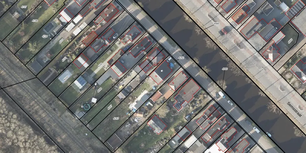 Gebruik de zoekbalk of klik op een perceel voor informatie over de adressen binnen dit perceel.