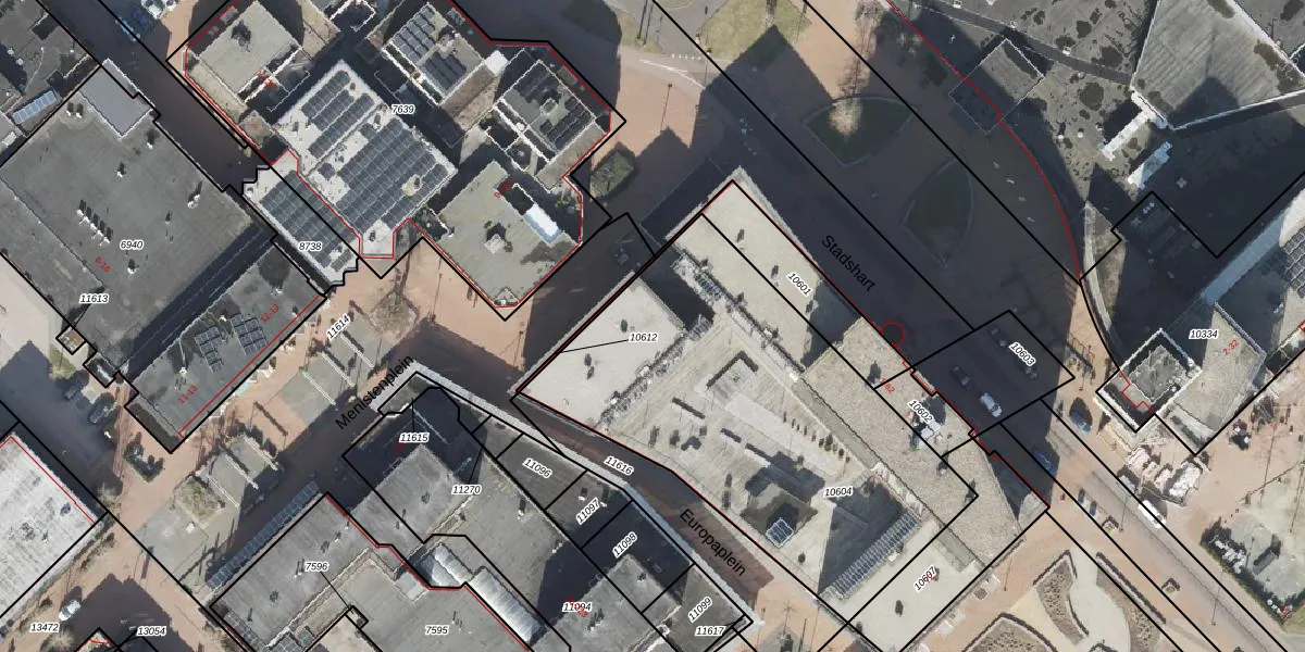 Het perceel waarop Stadshart 39 staat heeft een oppervlakte van 1917 m². Dit is een zeer groot perceel. De perceeloppervlakte wordt geregistreerd door het Kadaster. Gedetailleerde informatie over de maten van dit perceel kunt u vinden in het rapport Kadastrale kaart met maatvoering van Stadshart 39.