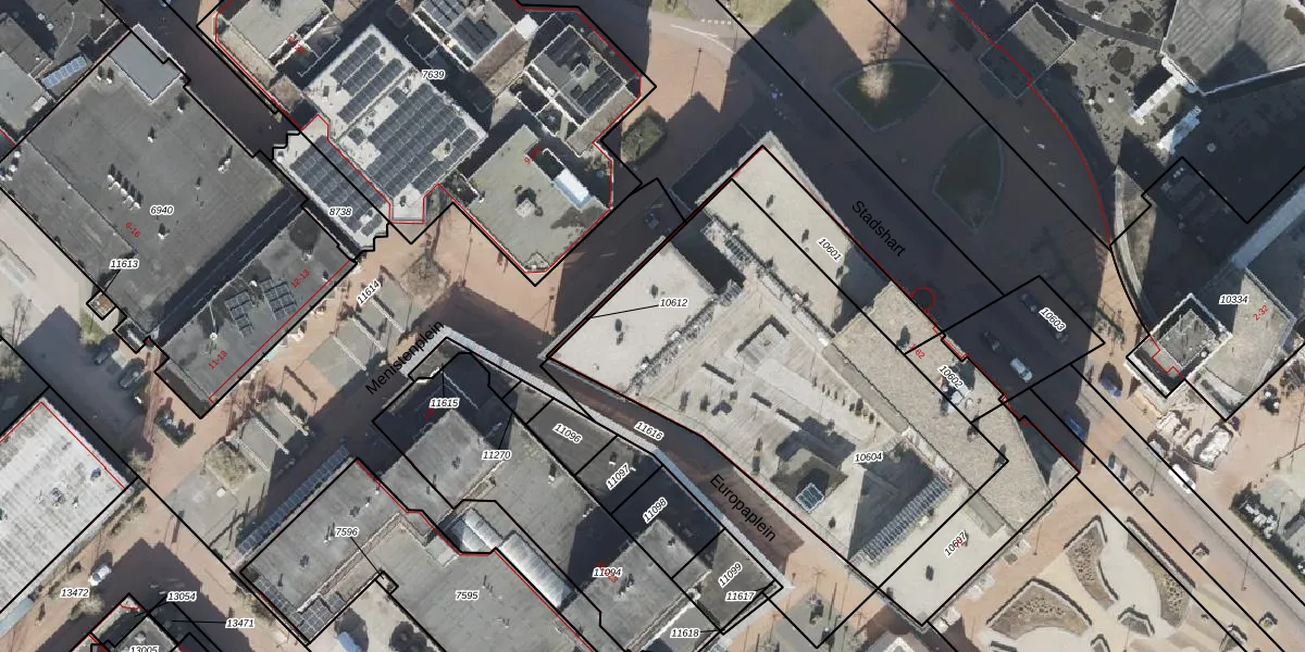 Het perceel waarop Stadshart 40 staat heeft een oppervlakte van 1917 m². Dit is een zeer groot perceel. De perceeloppervlakte wordt geregistreerd door het Kadaster. Gedetailleerde informatie over de maten van dit perceel kunt u vinden in het rapport Kadastrale kaart met maatvoering van Stadshart 40.