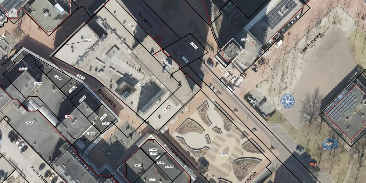 Het perceel waarop Stadshart 48 staat heeft een oppervlakte van 347 m². Dit is een groot perceel. De perceeloppervlakte wordt geregistreerd door het Kadaster. Gedetailleerde informatie over de maten van dit perceel kunt u vinden in het rapport Kadastrale kaart met maatvoering van Stadshart 48.