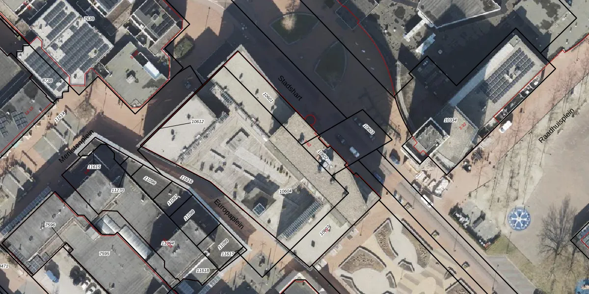 Het perceel waarop Stadshart 53 staat heeft een oppervlakte van 1917 m². Dit is een zeer groot perceel. De perceeloppervlakte wordt geregistreerd door het Kadaster. Gedetailleerde informatie over de maten van dit perceel kunt u vinden in het rapport Kadastrale kaart met maatvoering van Stadshart 53.