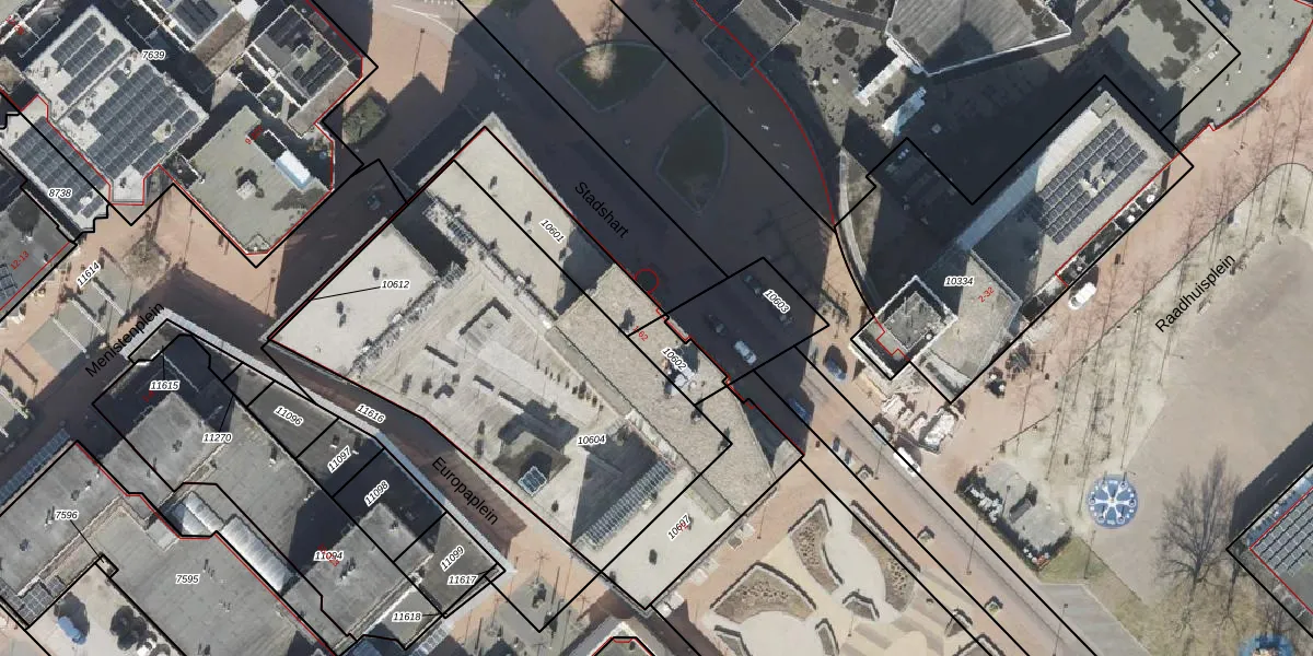 Het perceel waarop Stadshart 8 staat heeft een oppervlakte van 95 m². Dit is een klein perceel. De perceeloppervlakte wordt geregistreerd door het Kadaster. Gedetailleerde informatie over de maten van dit perceel kunt u vinden in het rapport Kadastrale kaart met maatvoering van Stadshart 8.