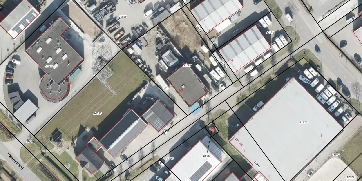 Gebruik de zoekbalk of klik op een perceel voor informatie over de adressen binnen dit perceel.
