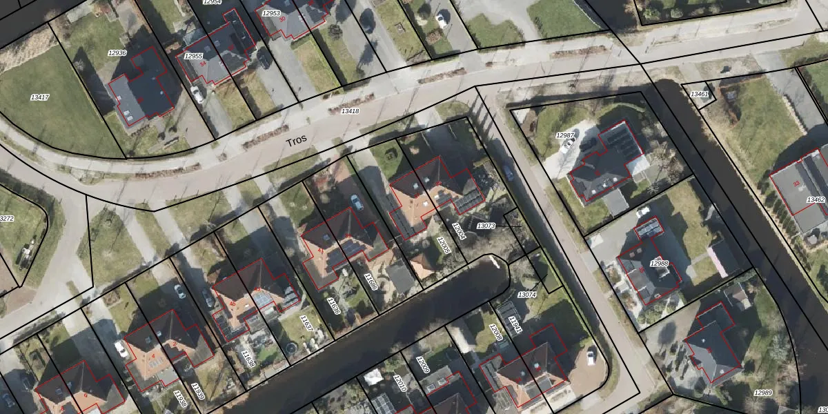 Het perceel waarop Tros 37 staat heeft een oppervlakte van 449 m². Dit is een groot perceel. De perceeloppervlakte wordt geregistreerd door het Kadaster. Gedetailleerde informatie over de maten van dit perceel kunt u vinden in het rapport Kadastrale kaart met maatvoering van Tros 37.