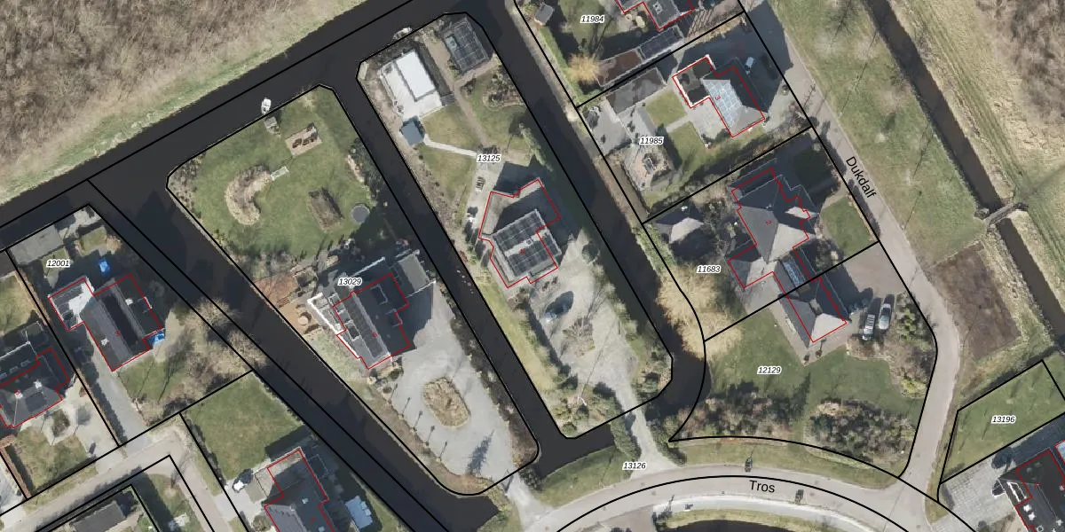 Het perceel waarop Tros 4 staat heeft een oppervlakte van 2046 m². Dit is een zeer groot perceel. De perceeloppervlakte wordt geregistreerd door het Kadaster. Gedetailleerde informatie over de maten van dit perceel kunt u vinden in het rapport Kadastrale kaart met maatvoering van Tros 4.
