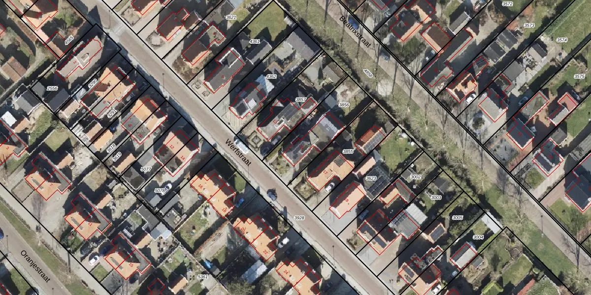 Gebruik de zoekbalk of klik op een perceel voor informatie over de adressen binnen dit perceel.
