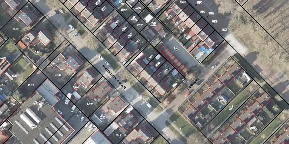 Gebruik de zoekbalk of klik op een perceel voor informatie over de adressen binnen dit perceel.