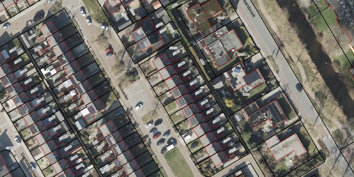 Gebruik de zoekbalk of klik op een perceel voor informatie over de adressen binnen dit perceel.