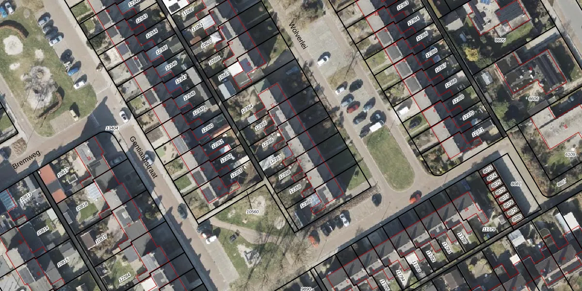 Gebruik de zoekbalk of klik op een perceel voor informatie over de adressen binnen dit perceel.