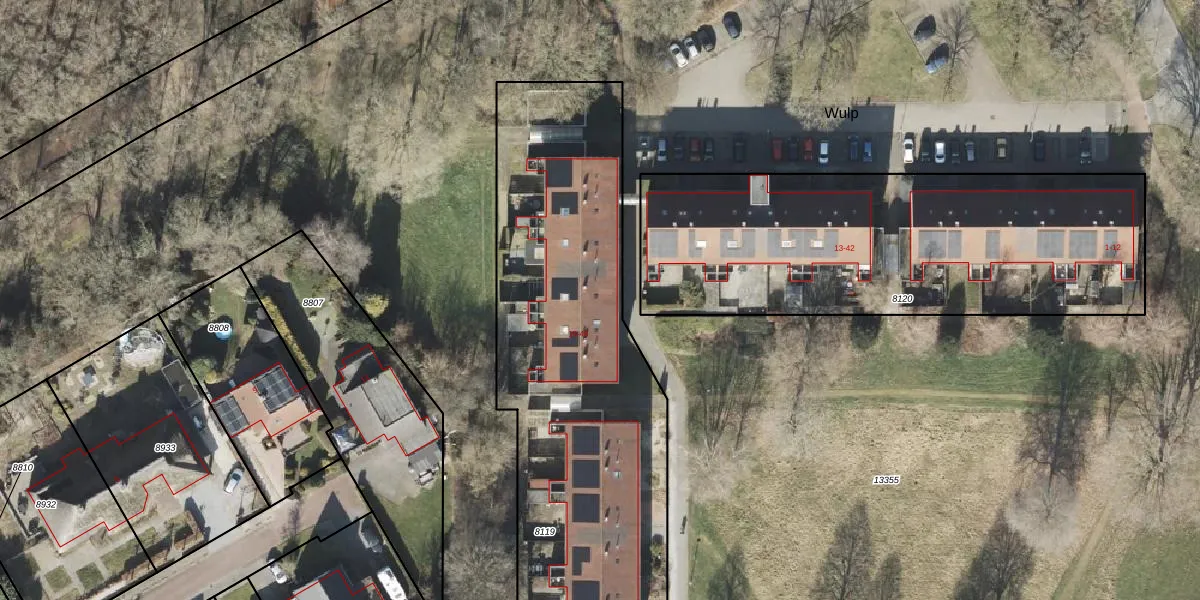 Het perceel waarop Wulp 22 staat heeft een oppervlakte van 3363 m². Dit is een zeer groot perceel. De perceeloppervlakte wordt geregistreerd door het Kadaster. Gedetailleerde informatie over de maten van dit perceel kunt u vinden in het rapport Kadastrale kaart met maatvoering van Wulp 22.