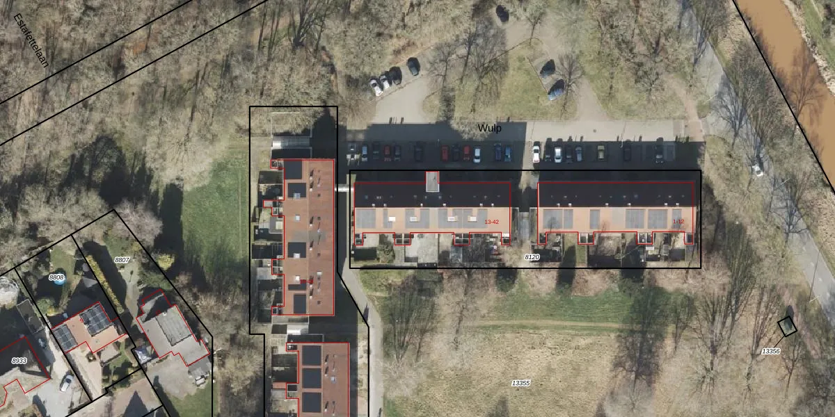 Het perceel waarop Wulp 28 staat heeft een oppervlakte van 1976 m². Dit is een zeer groot perceel. De perceeloppervlakte wordt geregistreerd door het Kadaster. Gedetailleerde informatie over de maten van dit perceel kunt u vinden in het rapport Kadastrale kaart met maatvoering van Wulp 28.