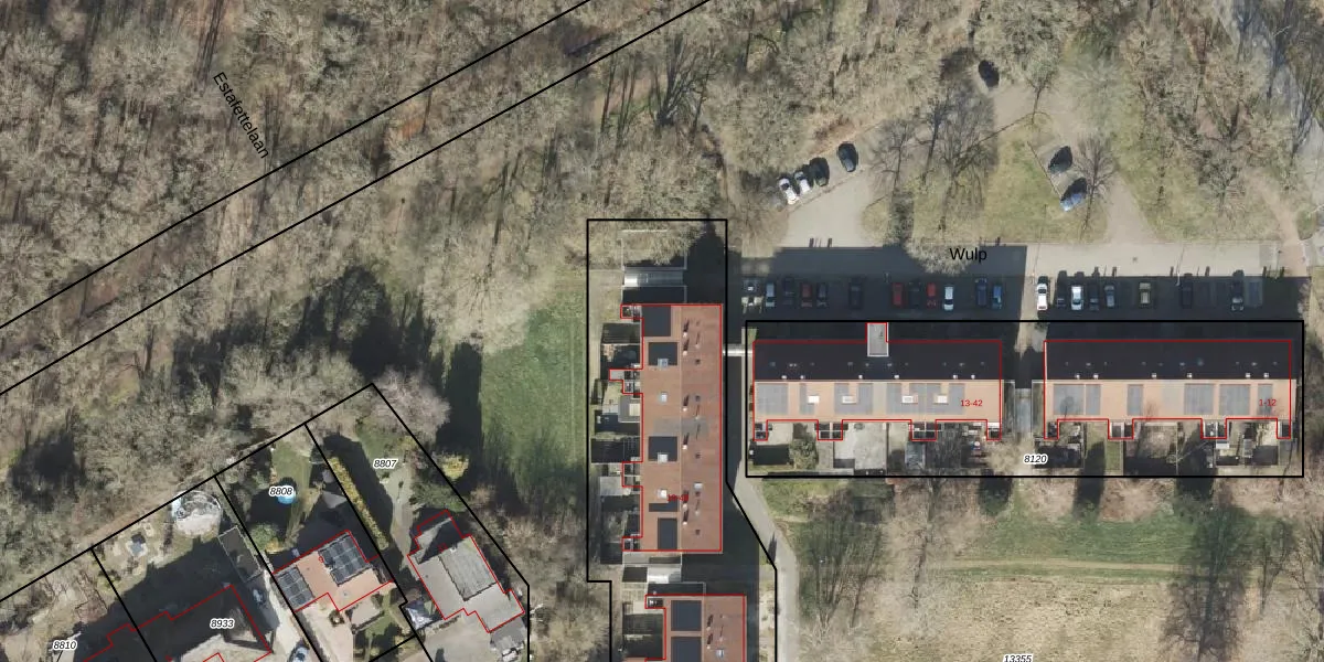 Het perceel waarop Wulp 43 staat heeft een oppervlakte van 3363 m². Dit is een zeer groot perceel. De perceeloppervlakte wordt geregistreerd door het Kadaster. Gedetailleerde informatie over de maten van dit perceel kunt u vinden in het rapport Kadastrale kaart met maatvoering van Wulp 43.