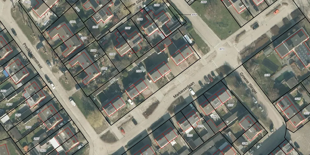 Het perceel waarop Markiezenlaan 9 staat heeft een oppervlakte van 1728 m². Dit is een zeer groot perceel. De perceeloppervlakte wordt geregistreerd door het Kadaster. Gedetailleerde informatie over de maten van dit perceel kunt u vinden in het rapport Kadastrale kaart met maatvoering van Markiezenlaan 9.