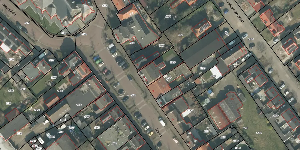 Het perceel waarop Markt 28-d staat heeft een oppervlakte van 344 m². Dit is een groot perceel. De perceeloppervlakte wordt geregistreerd door het Kadaster. Gedetailleerde informatie over de maten van dit perceel kunt u vinden in het rapport Kadastrale kaart met maatvoering van Markt 28-d.