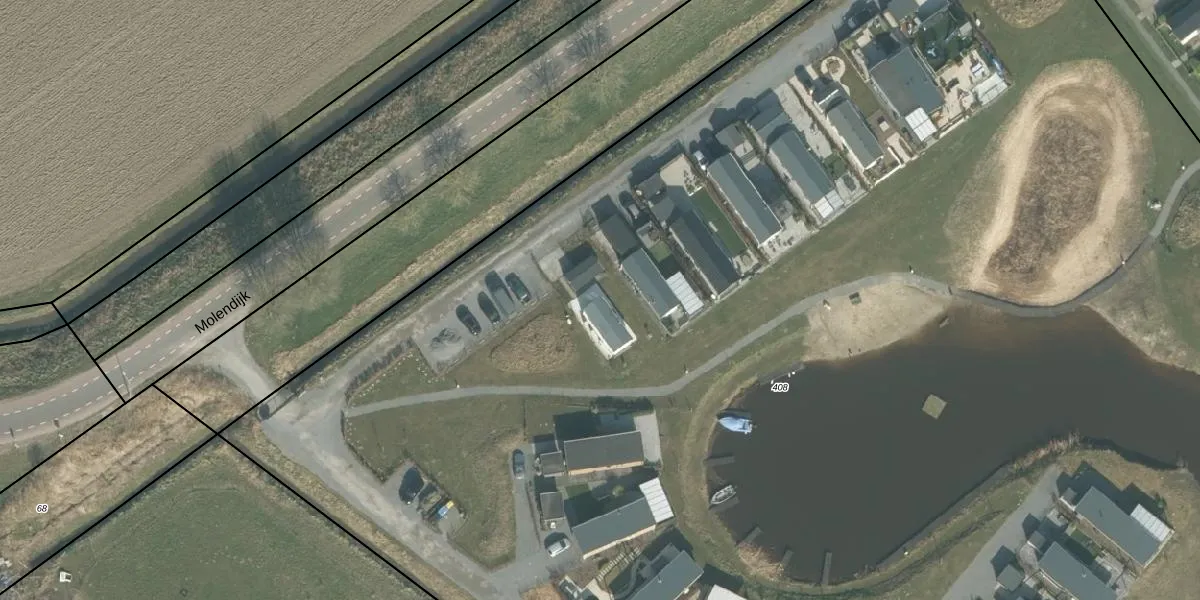 Het perceel waarop Molendijk 2-47 staat heeft een oppervlakte van 1,7 ha. Dit is een zeer groot perceel. De perceeloppervlakte wordt geregistreerd door het Kadaster. Gedetailleerde informatie over de maten van dit perceel kunt u vinden in het rapport Kadastrale kaart met maatvoering van Molendijk 2-47.