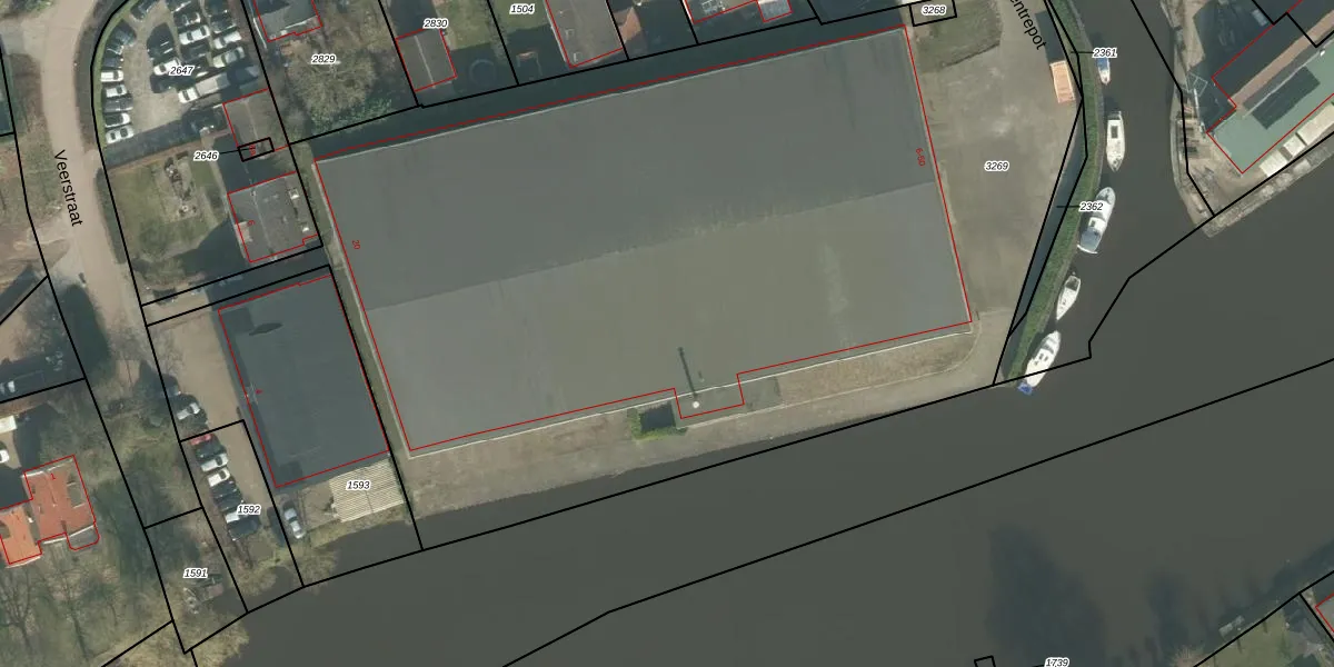 Het perceel waarop Suikerentrepot 12 staat heeft een oppervlakte van 6613 m². Dit is een zeer groot perceel. De perceeloppervlakte wordt geregistreerd door het Kadaster. Gedetailleerde informatie over de maten van dit perceel kunt u vinden in het rapport Kadastrale kaart met maatvoering van Suikerentrepot 12.