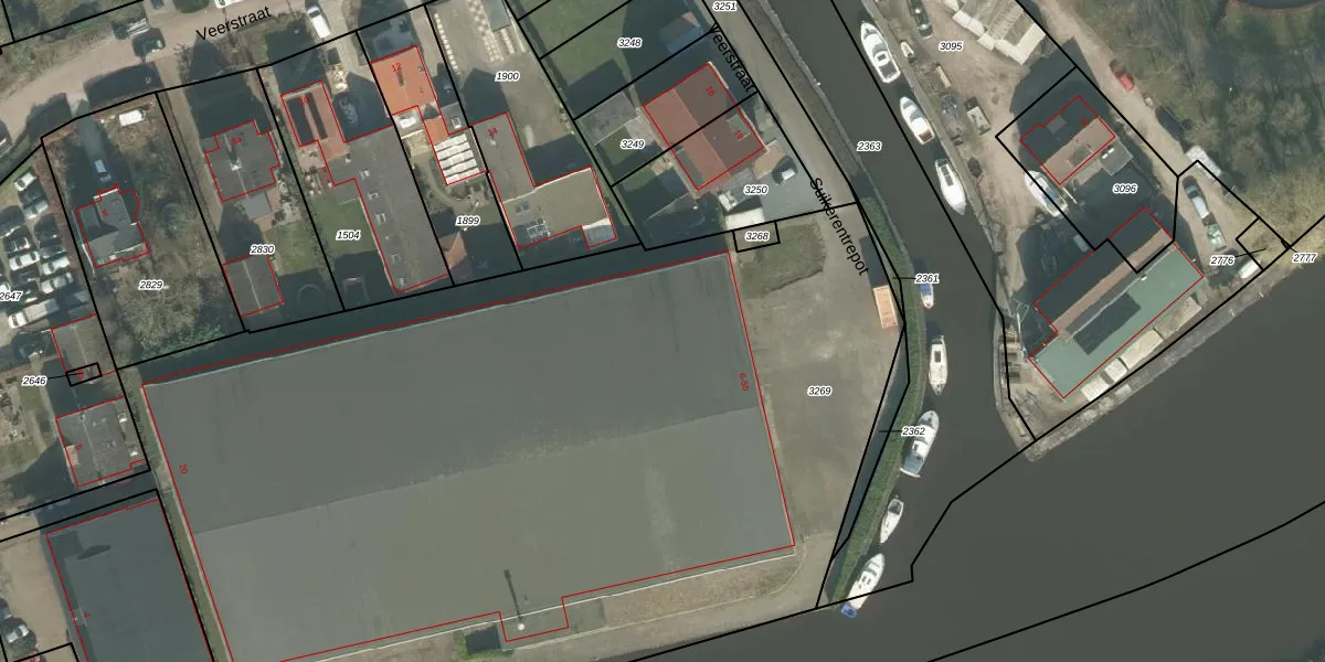 Het perceel waarop Suikerentrepot 19 staat heeft een oppervlakte van 6613 m². Dit is een zeer groot perceel. De perceeloppervlakte wordt geregistreerd door het Kadaster. Gedetailleerde informatie over de maten van dit perceel kunt u vinden in het rapport Kadastrale kaart met maatvoering van Suikerentrepot 19.