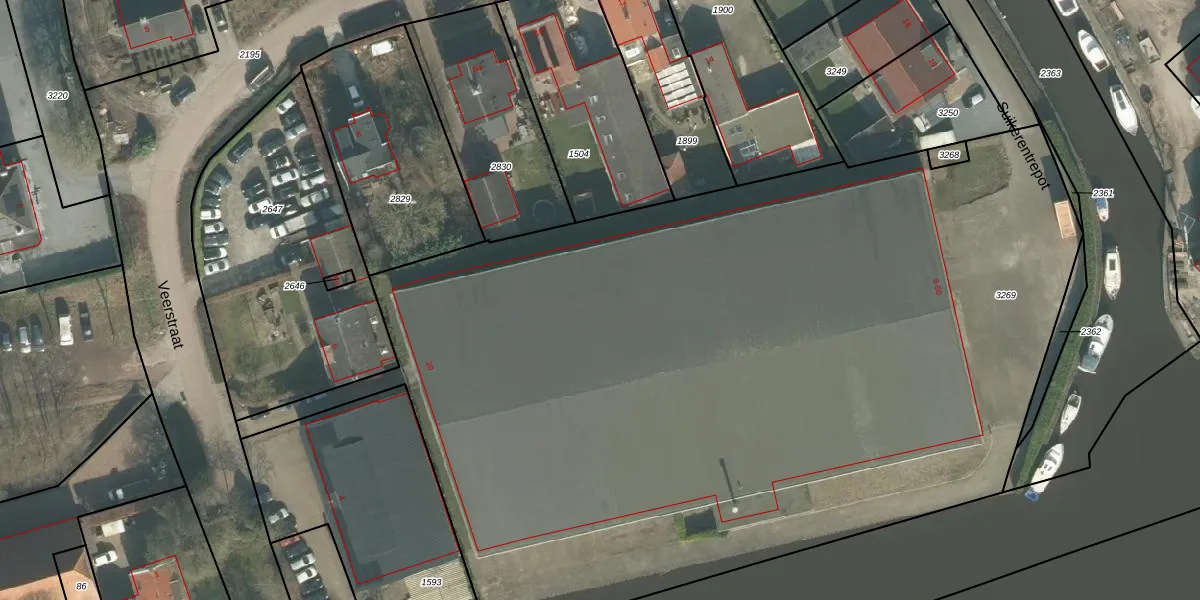Het perceel waarop Suikerentrepot 28 staat heeft een oppervlakte van 6613 m². Dit is een zeer groot perceel. De perceeloppervlakte wordt geregistreerd door het Kadaster. Gedetailleerde informatie over de maten van dit perceel kunt u vinden in het rapport Kadastrale kaart met maatvoering van Suikerentrepot 28.