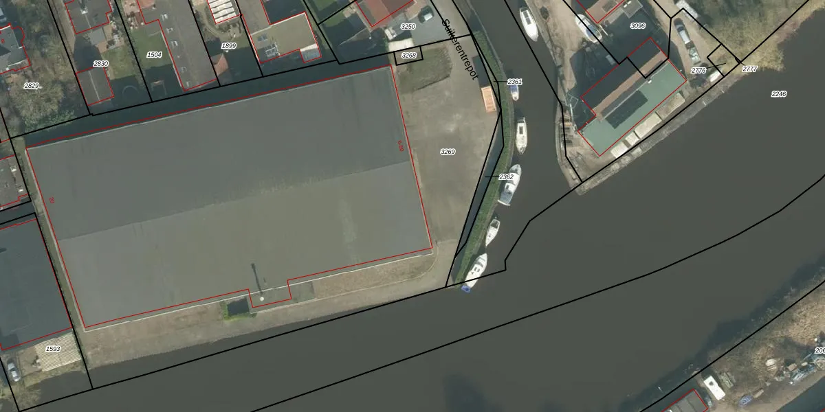 Het perceel waarop Suikerentrepot 35 staat heeft een oppervlakte van 6613 m². Dit is een zeer groot perceel. De perceeloppervlakte wordt geregistreerd door het Kadaster. Gedetailleerde informatie over de maten van dit perceel kunt u vinden in het rapport Kadastrale kaart met maatvoering van Suikerentrepot 35.