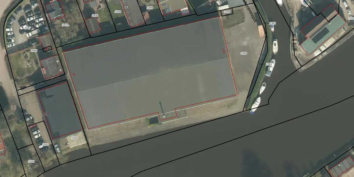 Het perceel waarop Suikerentrepot 41 staat heeft een oppervlakte van 6613 m². Dit is een zeer groot perceel. De perceeloppervlakte wordt geregistreerd door het Kadaster. Gedetailleerde informatie over de maten van dit perceel kunt u vinden in het rapport Kadastrale kaart met maatvoering van Suikerentrepot 41.