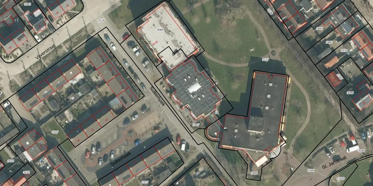 Suikerhoek 25 is gelegen op kadastraal perceel SDB02D2947. Deze kadastrale aanduiding is uniek en wordt gebruikt door het Kadaster om eigendomsrechten en andere zakelijke rechten vast te leggen. Het perceel maakt onderdeel uit van de kadastrale gemeente Standdaarbuiten.