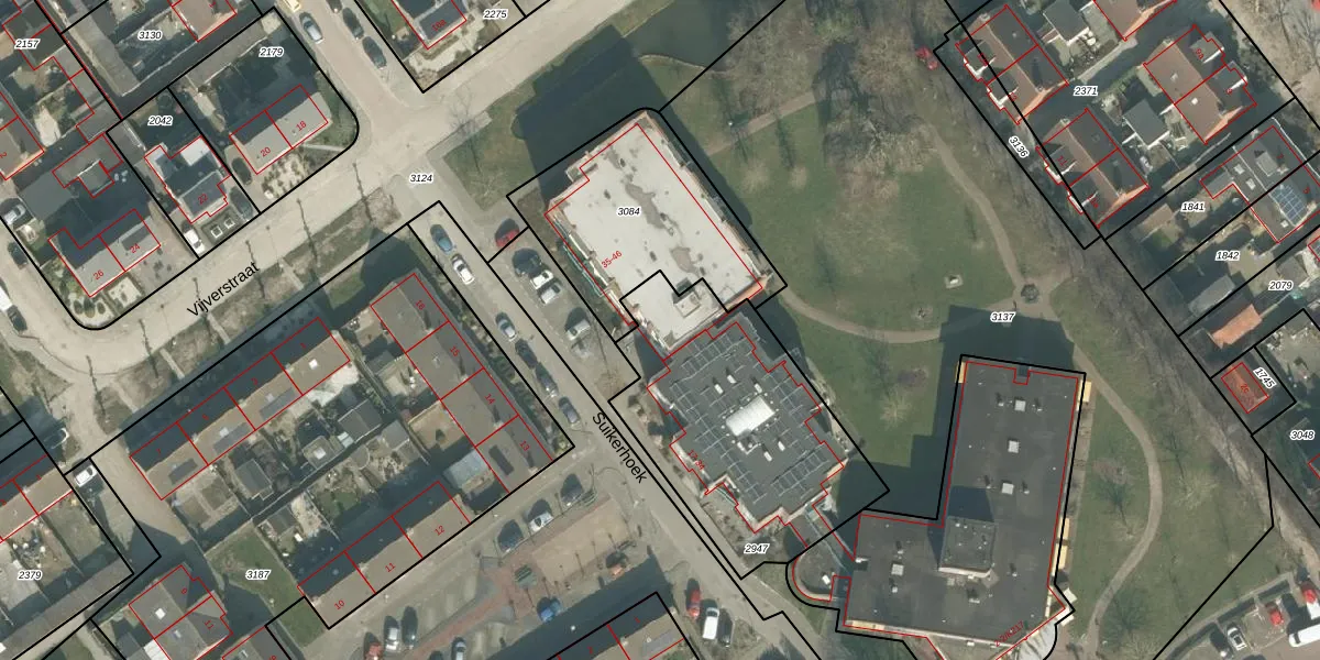 Het perceel waarop Suikerhoek 41 staat heeft een oppervlakte van 1070 m². Dit is een zeer groot perceel. De perceeloppervlakte wordt geregistreerd door het Kadaster. Gedetailleerde informatie over de maten van dit perceel kunt u vinden in het rapport Kadastrale kaart met maatvoering van Suikerhoek 41.