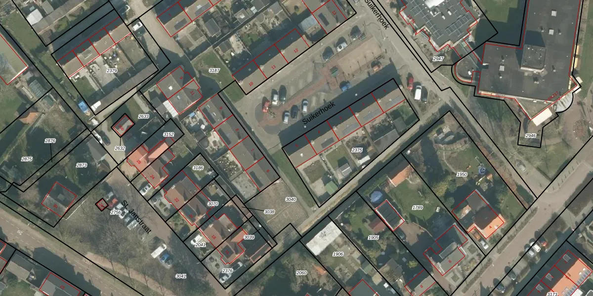 Suikerhoek 5 is gelegen op kadastraal perceel SDB02D2375. Deze kadastrale aanduiding is uniek en wordt gebruikt door het Kadaster om eigendomsrechten en andere zakelijke rechten vast te leggen. Het perceel maakt onderdeel uit van de kadastrale gemeente Standdaarbuiten.