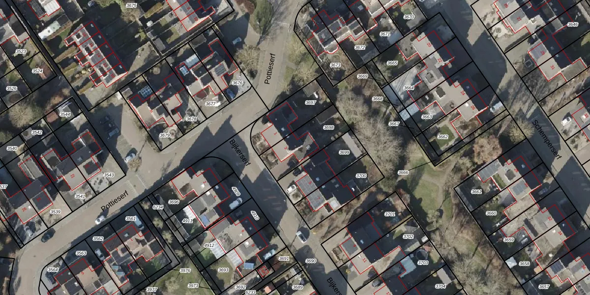 Het perceel waarop Bijkerserf 3 staat heeft een oppervlakte van 323 m². Dit is een groot perceel. De perceeloppervlakte wordt geregistreerd door het Kadaster. Gedetailleerde informatie over de maten van dit perceel kunt u vinden in het rapport Kadastrale kaart met maatvoering van Bijkerserf 3.