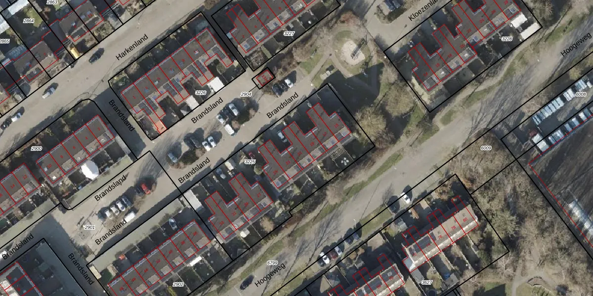 Het perceel waarop Brandsland 21 staat heeft een oppervlakte van 1702 m². Dit is een zeer groot perceel. De perceeloppervlakte wordt geregistreerd door het Kadaster. Gedetailleerde informatie over de maten van dit perceel kunt u vinden in het rapport Kadastrale kaart met maatvoering van Brandsland 21.