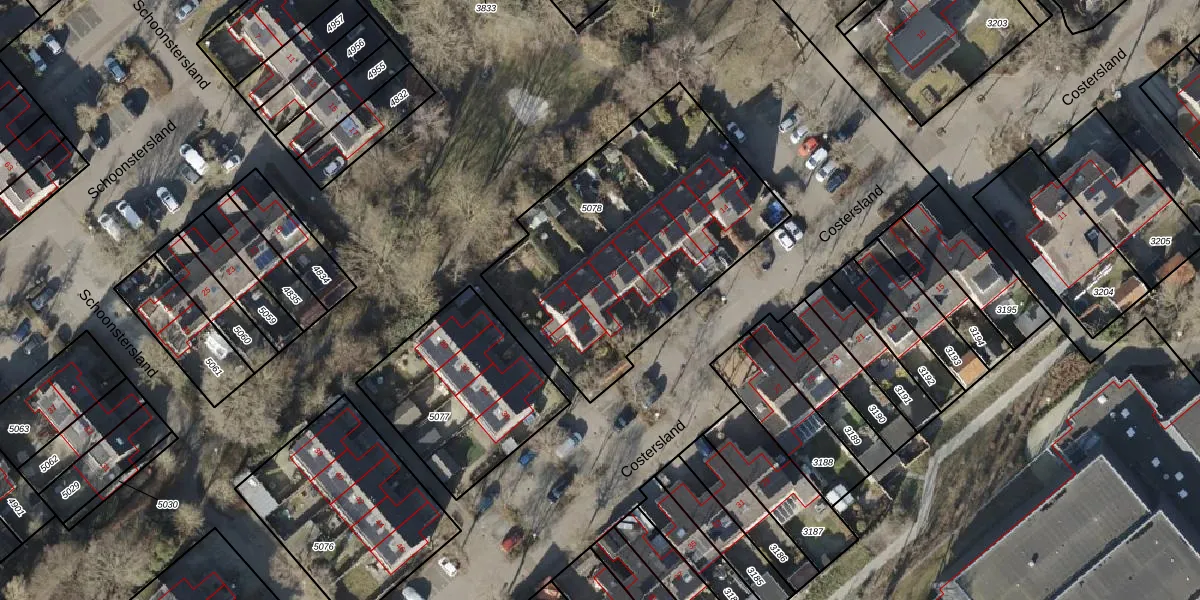 Het perceel waarop Costersland 24 staat heeft een oppervlakte van 1320 m². Dit is een zeer groot perceel. De perceeloppervlakte wordt geregistreerd door het Kadaster. Gedetailleerde informatie over de maten van dit perceel kunt u vinden in het rapport Kadastrale kaart met maatvoering van Costersland 24.