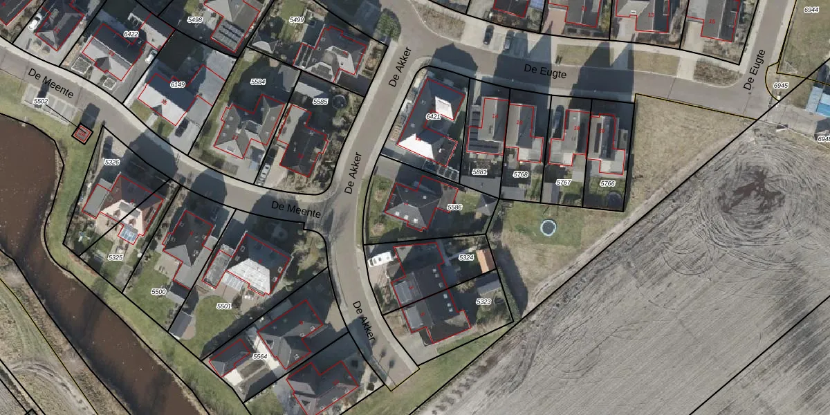 Het perceel waarop De Akker 1 staat heeft een oppervlakte van 479 m². Dit is een groot perceel. De perceeloppervlakte wordt geregistreerd door het Kadaster. Gedetailleerde informatie over de maten van dit perceel kunt u vinden in het rapport Kadastrale kaart met maatvoering van De Akker 1.