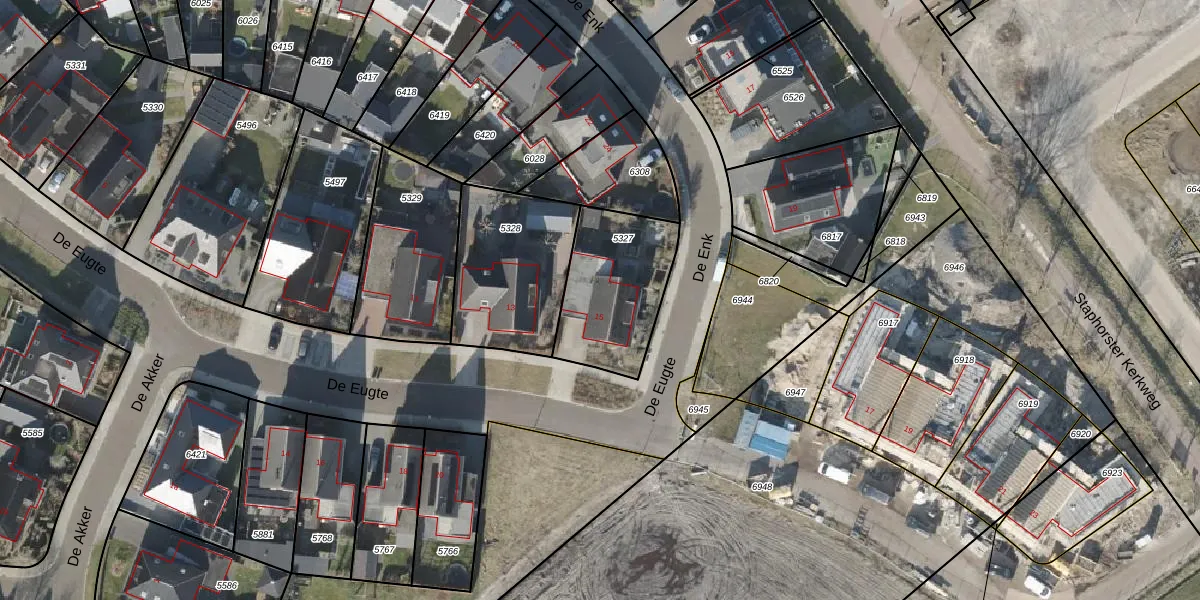 De Eugte 15 is gelegen op kadastraal perceel SHT02AA5327. Deze kadastrale aanduiding is uniek en wordt gebruikt door het Kadaster om eigendomsrechten en andere zakelijke rechten vast te leggen. Het perceel maakt onderdeel uit van de kadastrale gemeente Staphorst.
