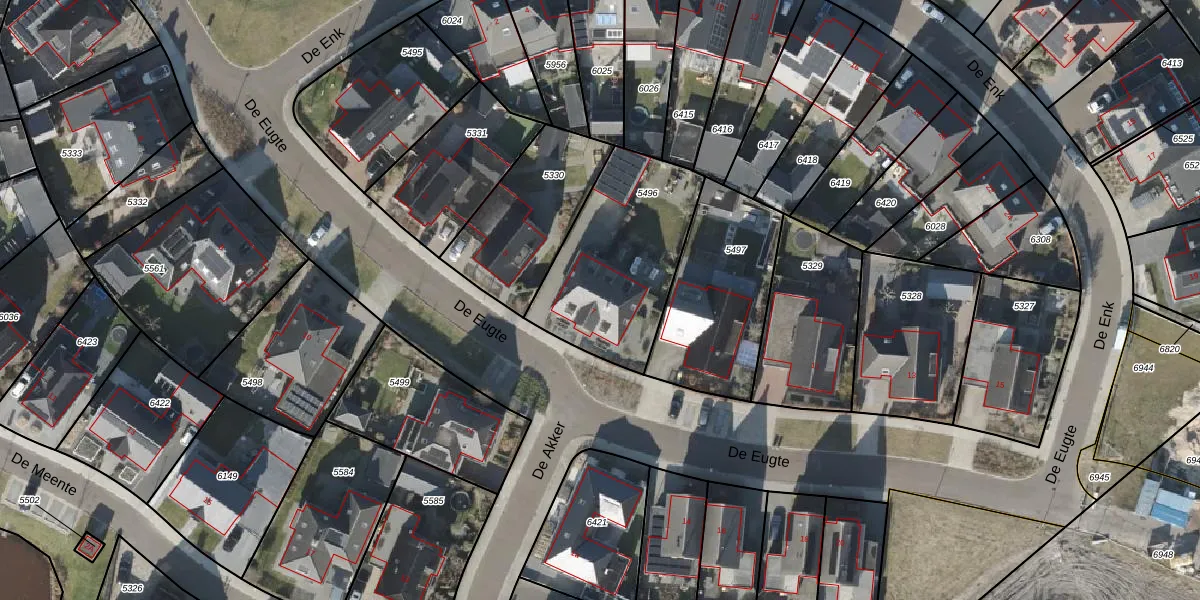 Het perceel waarop De Eugte 7 staat heeft een oppervlakte van 647 m². Dit is een groot perceel. De perceeloppervlakte wordt geregistreerd door het Kadaster. Gedetailleerde informatie over de maten van dit perceel kunt u vinden in het rapport Kadastrale kaart met maatvoering van De Eugte 7.