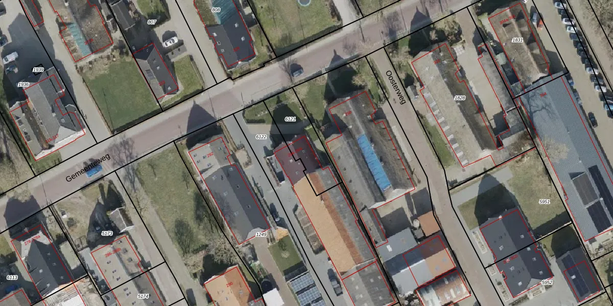 Het perceel waarop Gemeenteweg 294 staat heeft een oppervlakte van 346 m². Dit is een groot perceel. De perceeloppervlakte wordt geregistreerd door het Kadaster. Gedetailleerde informatie over de maten van dit perceel kunt u vinden in het rapport Kadastrale kaart met maatvoering van Gemeenteweg 294.