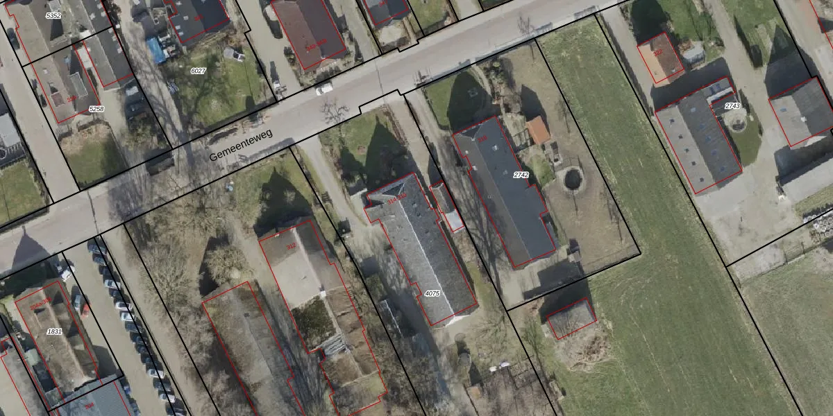Het perceel waarop Gemeenteweg 316 staat heeft een oppervlakte van 2695 m². Dit is een zeer groot perceel. De perceeloppervlakte wordt geregistreerd door het Kadaster. Gedetailleerde informatie over de maten van dit perceel kunt u vinden in het rapport Kadastrale kaart met maatvoering van Gemeenteweg 316.
