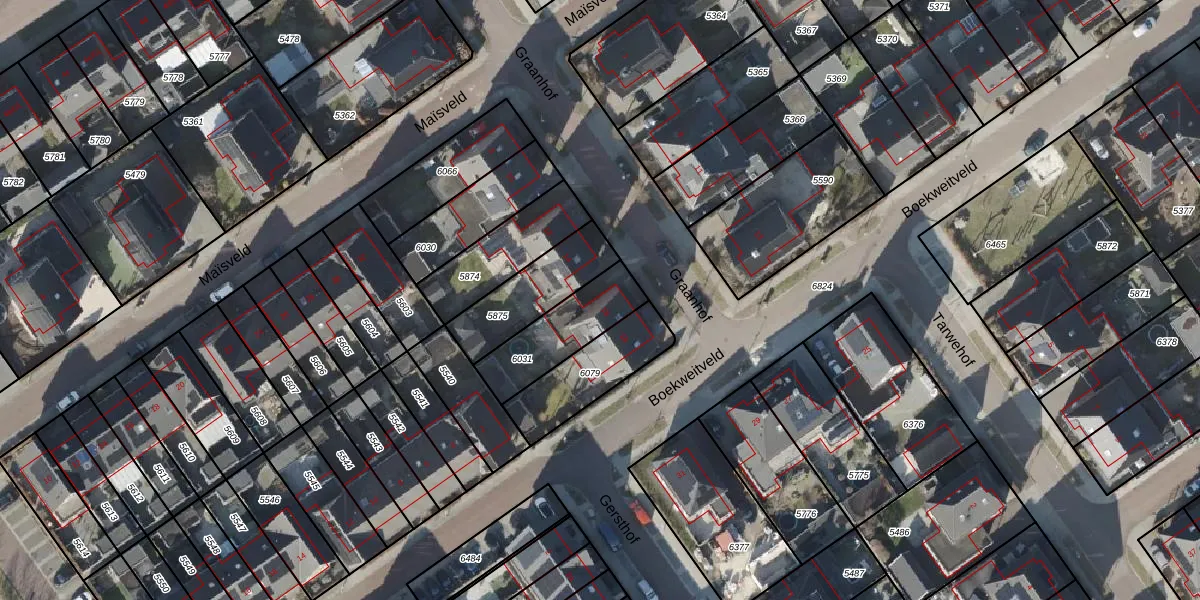 Het perceel waarop Graanhof 16 staat heeft een oppervlakte van 247 m². Dit is een middelgroot perceel. De perceeloppervlakte wordt geregistreerd door het Kadaster. Gedetailleerde informatie over de maten van dit perceel kunt u vinden in het rapport Kadastrale kaart met maatvoering van Graanhof 16.