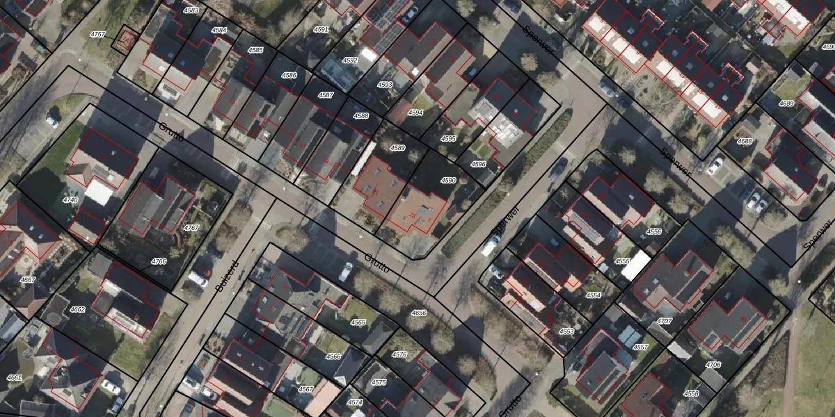 Het perceel waarop Grutto 23 staat heeft een oppervlakte van 365 m². Dit is een groot perceel. De perceeloppervlakte wordt geregistreerd door het Kadaster. Gedetailleerde informatie over de maten van dit perceel kunt u vinden in het rapport Kadastrale kaart met maatvoering van Grutto 23.