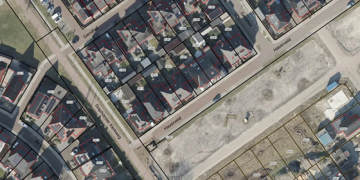 Haverveld 7 is gelegen op kadastraal perceel SHT02AA5653. Deze kadastrale aanduiding is uniek en wordt gebruikt door het Kadaster om eigendomsrechten en andere zakelijke rechten vast te leggen. Het perceel maakt onderdeel uit van de kadastrale gemeente Staphorst.