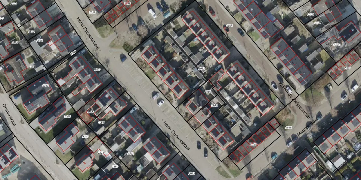 Het perceel waarop Henri Dunantstraat 36 staat heeft een oppervlakte van 3341 m². Dit is een zeer groot perceel. De perceeloppervlakte wordt geregistreerd door het Kadaster. Gedetailleerde informatie over de maten van dit perceel kunt u vinden in het rapport Kadastrale kaart met maatvoering van Henri Dunantstraat 36.