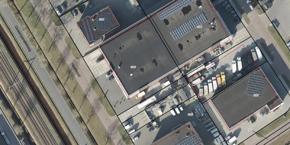 Het perceel waarop Hoefsmid 6-a staat heeft een oppervlakte van 2496 m². Dit is een zeer groot perceel. De perceeloppervlakte wordt geregistreerd door het Kadaster. Gedetailleerde informatie over de maten van dit perceel kunt u vinden in het rapport Kadastrale kaart met maatvoering van Hoefsmid 6-a.