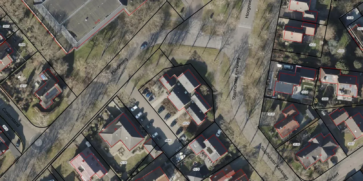 Gebruik de zoekbalk of klik op een perceel voor informatie over de adressen binnen dit perceel.