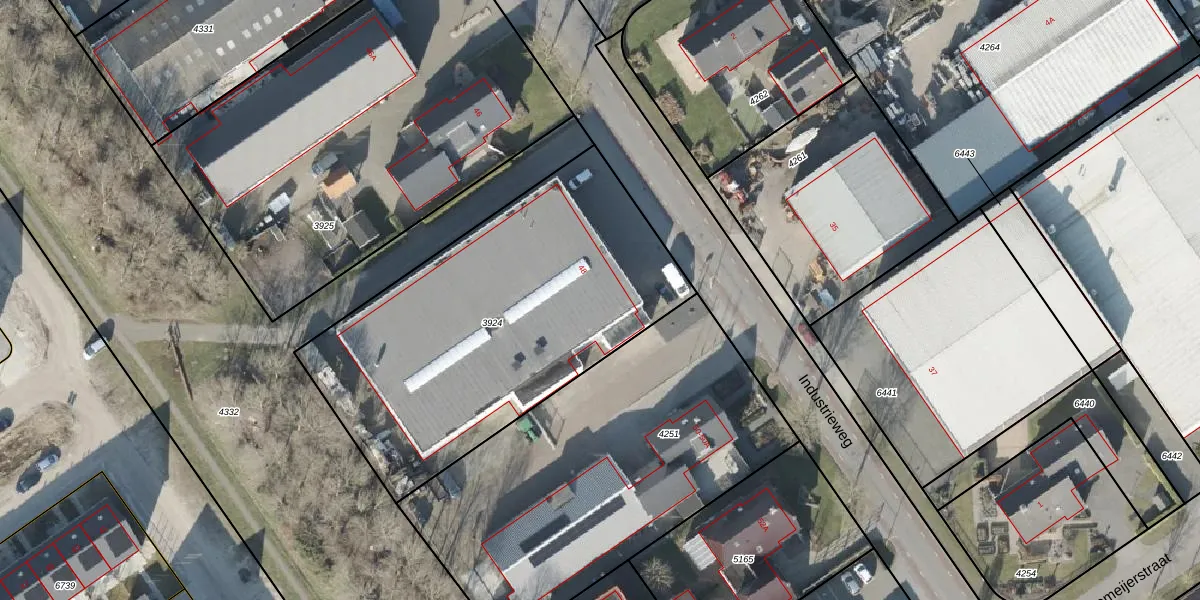 Het perceel waarop Industrieweg 48-a staat heeft een oppervlakte van 1800 m². Dit is een zeer groot perceel. De perceeloppervlakte wordt geregistreerd door het Kadaster. Gedetailleerde informatie over de maten van dit perceel kunt u vinden in het rapport Kadastrale kaart met maatvoering van Industrieweg 48-a.
