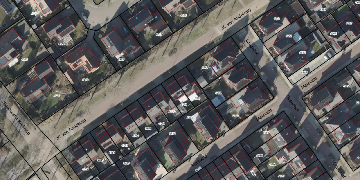 JC van Andelweg 4-d is gelegen op kadastraal perceel SHT02AA5778. Deze kadastrale aanduiding is uniek en wordt gebruikt door het Kadaster om eigendomsrechten en andere zakelijke rechten vast te leggen. Het perceel maakt onderdeel uit van de kadastrale gemeente Staphorst.