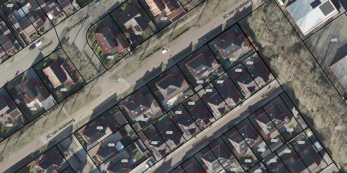 Het perceel waarop JC van Andelweg 4-f staat heeft een oppervlakte van 421 m². Dit is een groot perceel. De perceeloppervlakte wordt geregistreerd door het Kadaster. Gedetailleerde informatie over de maten van dit perceel kunt u vinden in het rapport Kadastrale kaart met maatvoering van JC van Andelweg 4-f.
