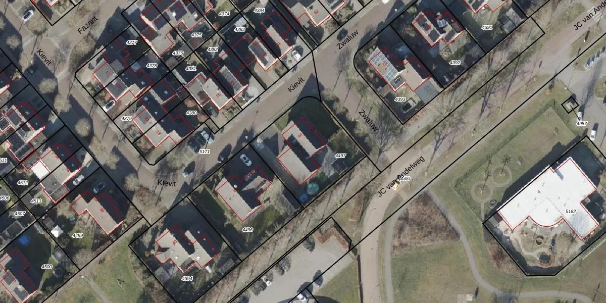 Het perceel waarop Kievit 44 staat heeft een oppervlakte van 757 m². Dit is een groot perceel. De perceeloppervlakte wordt geregistreerd door het Kadaster. Gedetailleerde informatie over de maten van dit perceel kunt u vinden in het rapport Kadastrale kaart met maatvoering van Kievit 44.