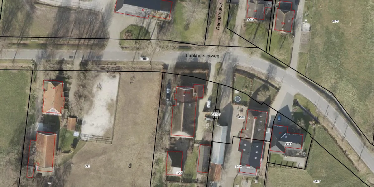 Het perceel waarop Lankhorsterweg 41 staat heeft een oppervlakte van 3080 m². Dit is een zeer groot perceel. De perceeloppervlakte wordt geregistreerd door het Kadaster. Gedetailleerde informatie over de maten van dit perceel kunt u vinden in het rapport Kadastrale kaart met maatvoering van Lankhorsterweg 41.