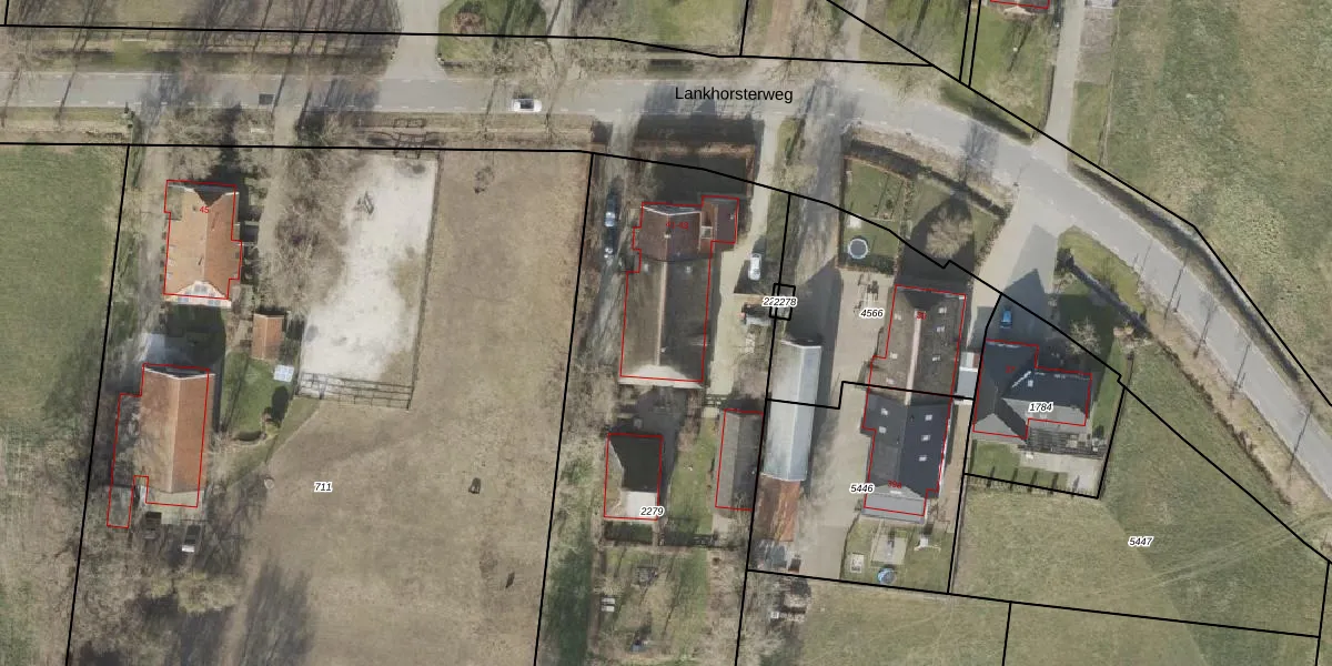 Het perceel waarop Lankhorsterweg 43 staat heeft een oppervlakte van 3080 m². Dit is een zeer groot perceel. De perceeloppervlakte wordt geregistreerd door het Kadaster. Gedetailleerde informatie over de maten van dit perceel kunt u vinden in het rapport Kadastrale kaart met maatvoering van Lankhorsterweg 43.